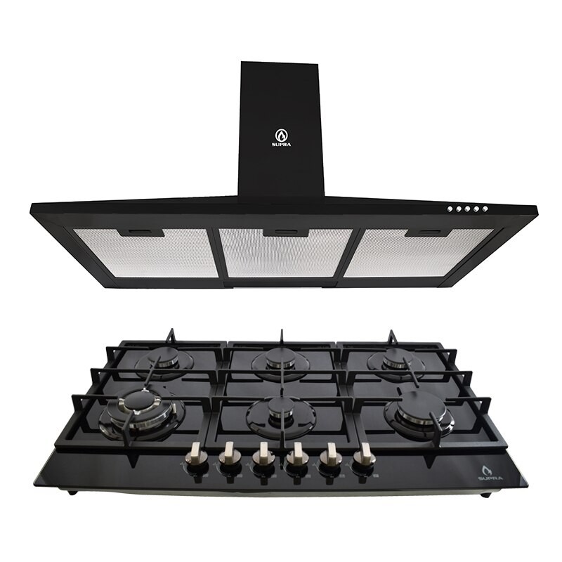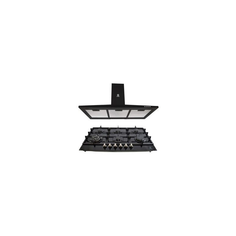 Parrilla a gas de 6 quemadores para empotrar de 90 cm, con cubierta de cristal templado.