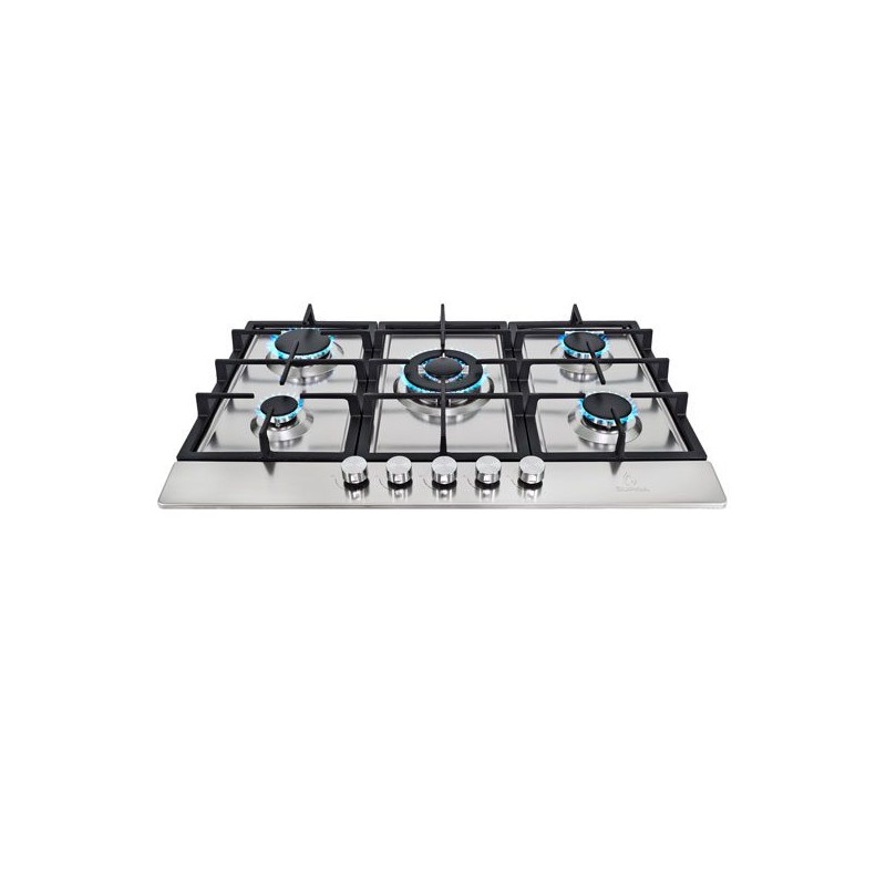 Hecha de materiales resistentes, su cubierta de acero que soporta hasta 30 kg, parrillas superiores de hierro fundido, y perillas de aceroEstufa de gas empotrable de 76 cm modelo 5Q-PS-76 de la marca SUPRA con encendido electrónico, en cada uno de sus quemadores y válvula de seguridad.
