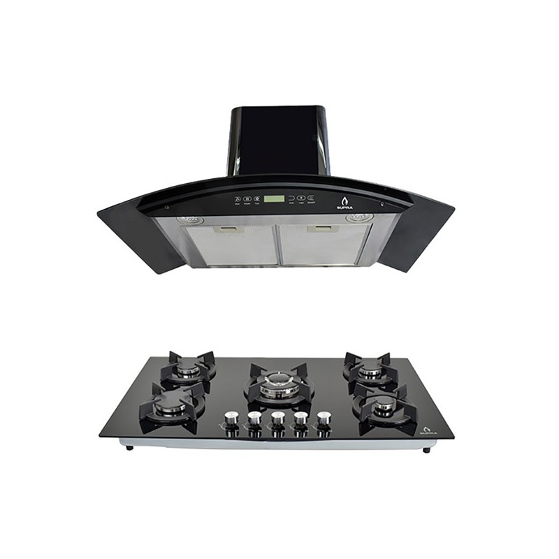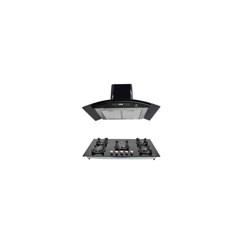 Parrilla a gas de 5 quemadores para empotrar de 90 cmcon cubierta de cristal templado color negro.