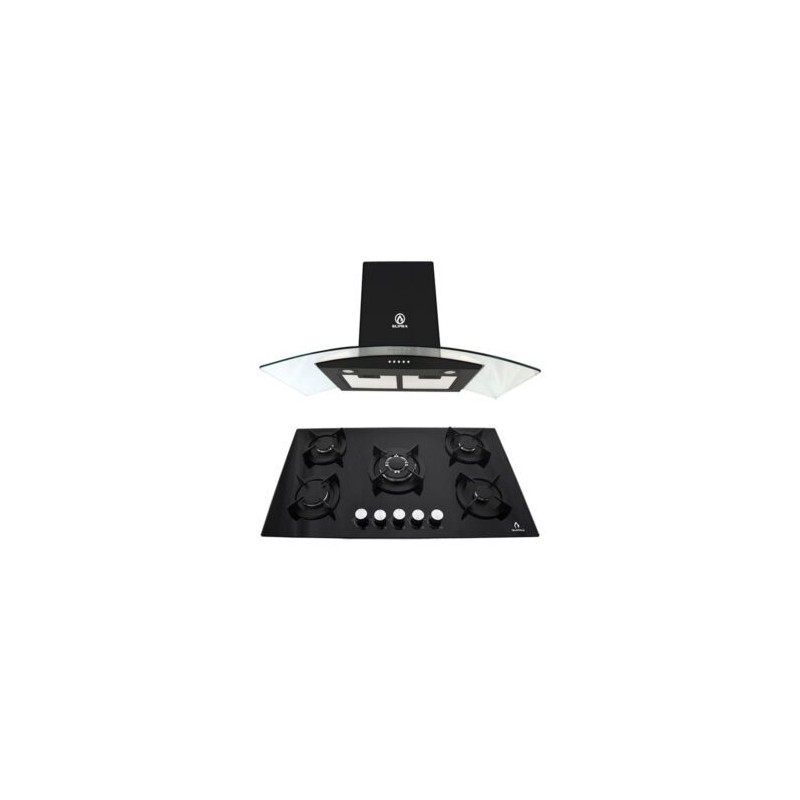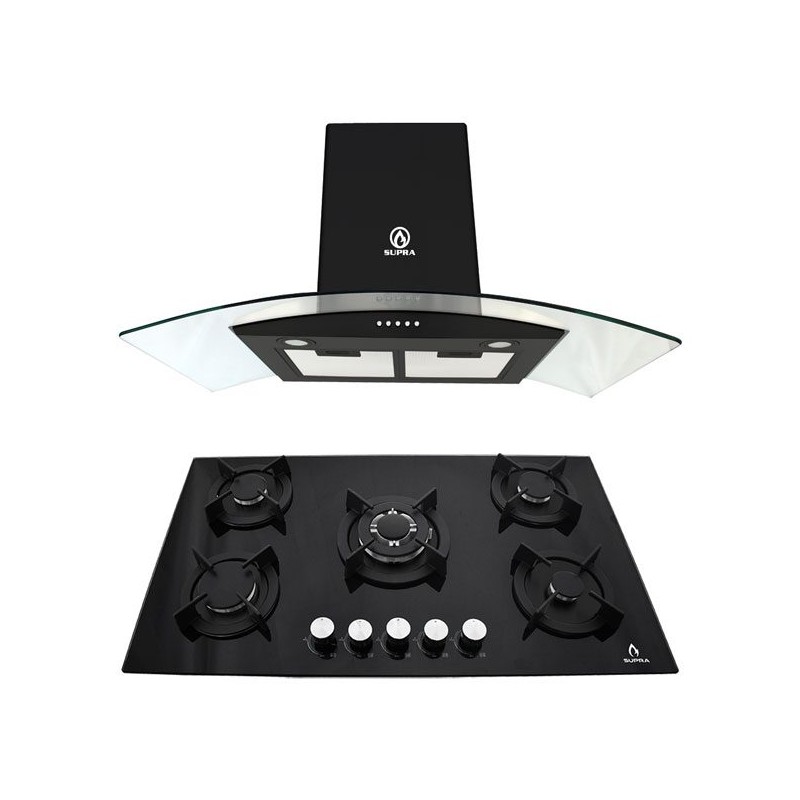 Parrilla a gas de 5 quemadores para empotrar de 90 cmcon cubierta de cristal templado color negro.