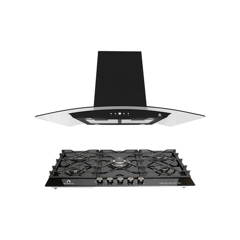 Parrilla a gas de 5 quemadores para empotrar de 87 cm con cubierta de cristal templado color negro.