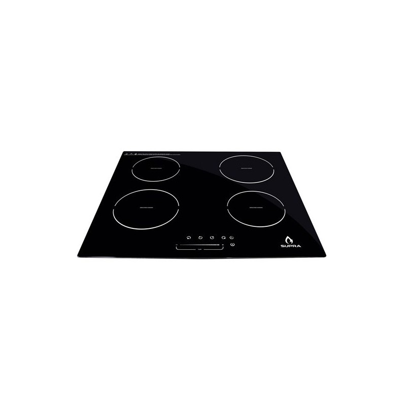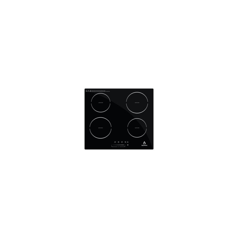Parrilla eléctrica de inducción magnética de 4 quemadores para empotrar con cubierta de cristal templado color negro en 220-240 V~.Cubierta superior en cristal templado negro de 4 mm de espesor.Soporta 20 kg de peso total en cristal.Panel de cristal con botones táctiles (touch control) con 9 niveles de potencia.Bloqueo de seguridad de panel táctil, tocar el botón de 3 a 5 segundos para activar.Temporizador de 1 a 99 minutos.Encendido electrónico en todos los quemadores.No incluye clavija (conexión directa a pastilla termomagnética).Conexión a un receptáculo.Medidas: Altura: 6.5 cm x Frente: 59 cm x Fondo: 52 cm x Peso: 9.02 kg.Medidas de empotre: Frente: 56 cm x Fondo 49 cm.