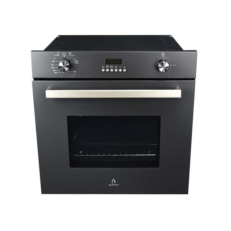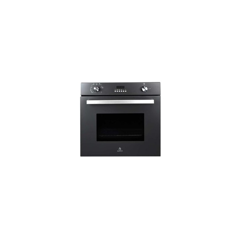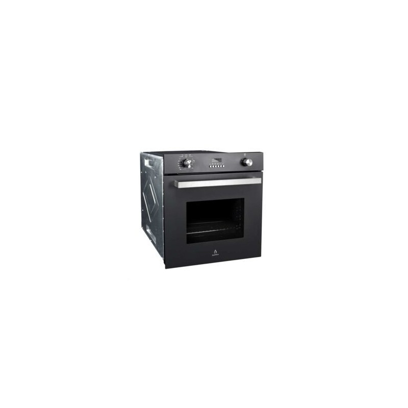 Horno a gas para empotrar en cristal templado color negro mate con quemador de horno y asador.