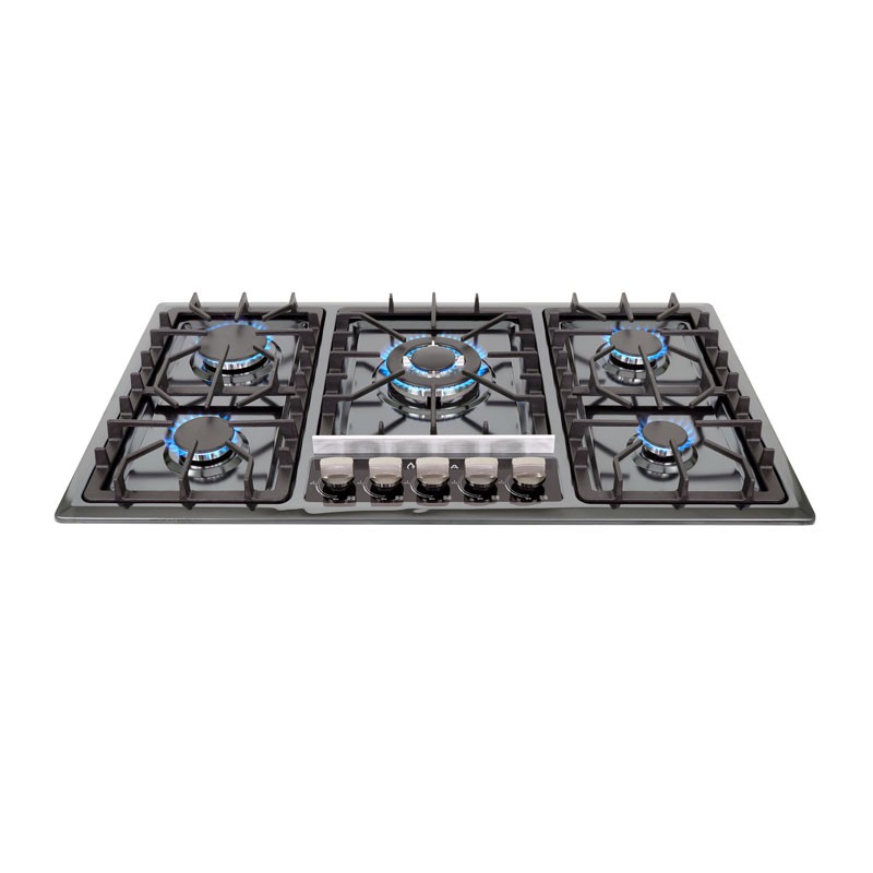 Parrilla de gas empotrable con 5 quemadores de diferentes capacidades térmicas, platos de quemador en acero esmaltado, con goma antiderrame enperillas y quemadores.Configurada de fabrica para usar con gas LP, incluye espreas para cambio a gas natural.Esta parrilla cuenta con doble certificación NOMIncluye manual de usuario, póliza de garantía, espreas para conversión agas natural, adaptador para conexión a tubería de gas.Hecha de materiales resistentes, su cubierta de acero que soporta hasta30 kg, parrillas superiores de hierro fundido, y perillas de acero inoxidable color negroParrilla empotrable de 87 cm con encendido electrónico, en cada uno de sus quemadores y válvula de seguridad.Fácil de limpiar utiliza un paño de microfibra húmedo para el mejor cuidado de tu parrilla Supra.