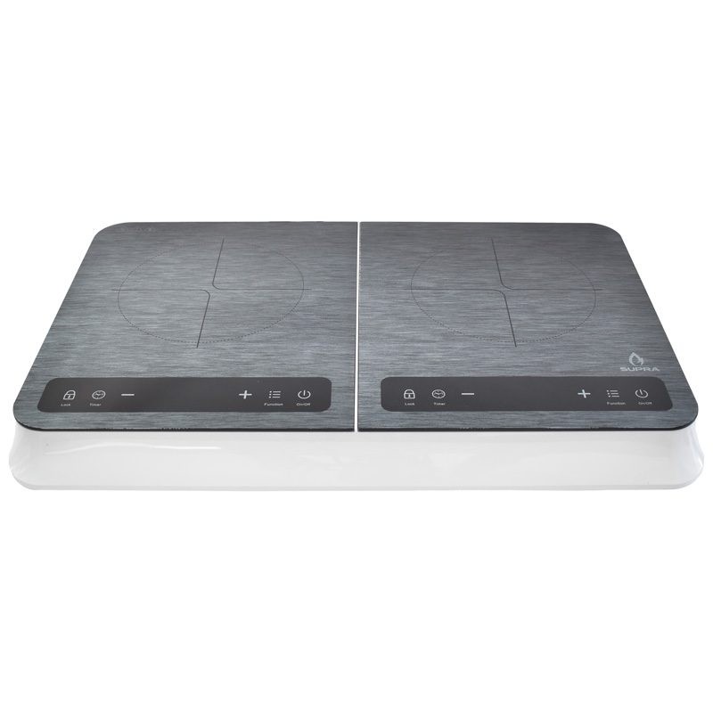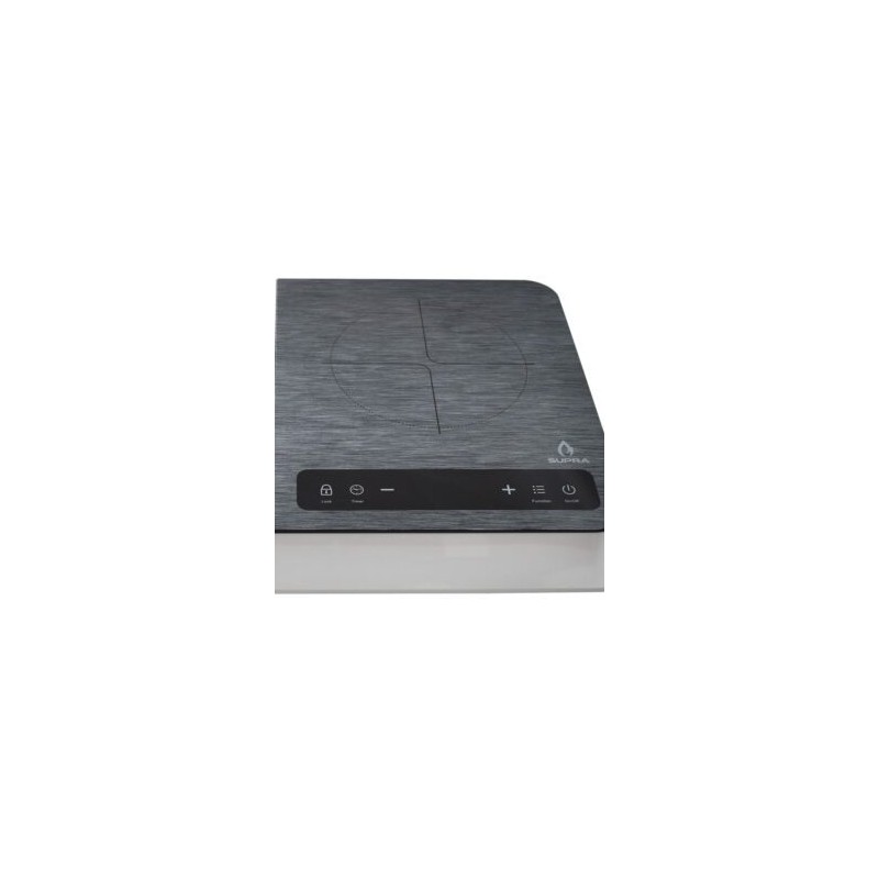 Parrilla de inducción magnética de 2 quemadores con 6 niveles de temperatura, 4 horas de cuenta regresiva integrada. Cuenta con un bloqueo de seguridad del panel touch control, toca 5 segundos para activar la función.La parrilla de inducción Brush TWO marca SUPRA calienta directamente al recipiente usando electromagnetismo.Cubierta de cristal templado texturizado con acabado BRUSH y cuerpo de plástico.Fácil de instalar, solo conecta a tu instalación eléctrica especificaciones; 127 V~ 60 Hz 1 200 W.Mide 59 cm de frente x 38 cm de fondo x 6.5 cm de alto, pesa 4.5 kg.