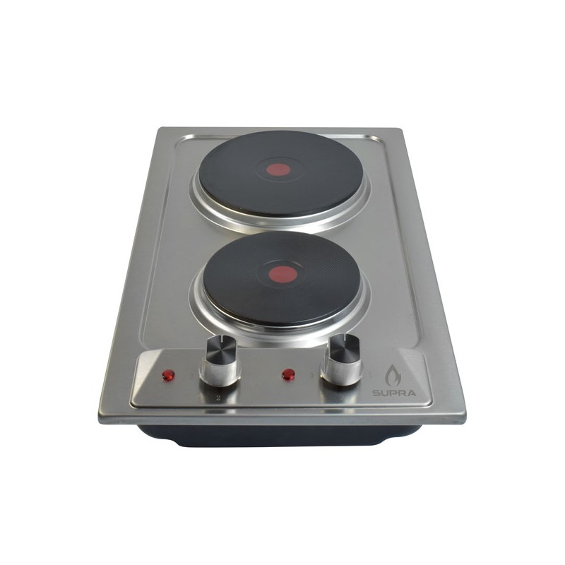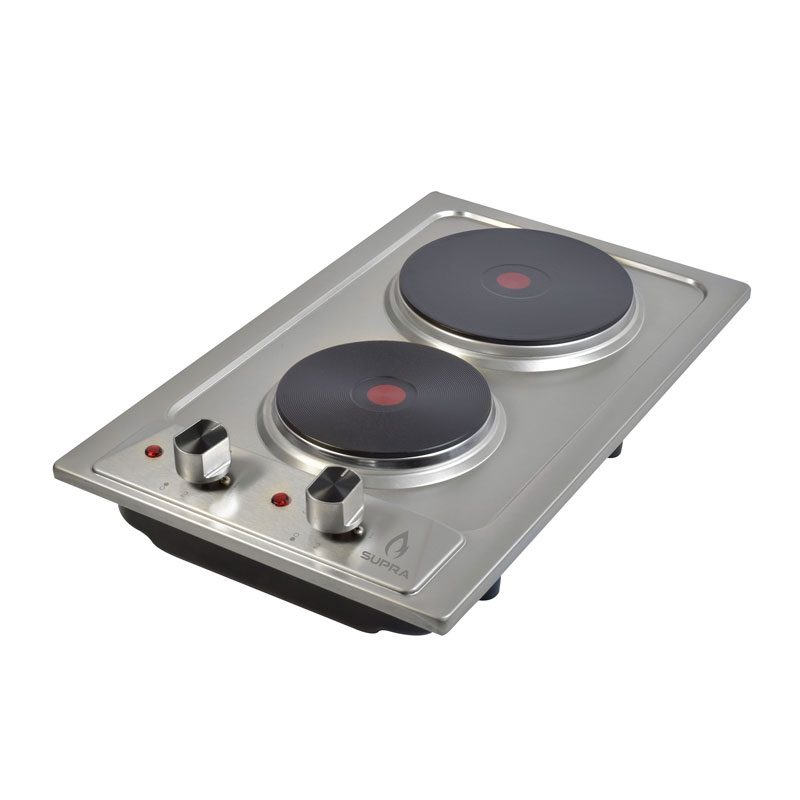 CARACTERÍSTICAS PRINCIPALES:Parrilla eléctrica para empotrar de 2 platos quemadores en acero inoxidable.Conexión a un receptáculo.No incluye clavija.Cubierta de acero inoxidable acabado cepillado.Luz LED indicadora de encendido por quemador.3 niveles de calentamiento.Superficies de cocción de calentamiento uniforme.Cable de alimentación 3×2.5 mm² 105° 300/500 V, conexión directa a pastilla termomagnética.1 plato superior de 1 250 W.1 plato inferior de 850 W.Medidas:Altura: 12 cmFrente: 31 cmFondo: 51 cmPeso: 4.7 kgVolumen: 0.019 (m³)Total: 110 V ~ 60 Hz 2 100 W