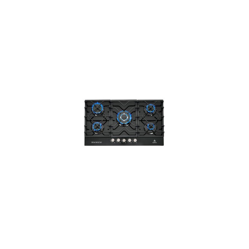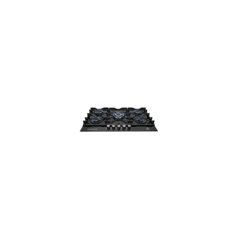 Estufa de gas empotrable con 5 quemadores de diferentes capacidades térmicas, platos de quemador en acero esmaltado, con goma antiderrame en perillas y quemadores.Configurada de fabrica para usar con gas LP, incluye espreas para cambio a gas natural.Hecha de materiales resistentes, su cubierta de cristal templado es de 7mm de espesor, soporta hasta 25 kg, parrillas superiores de hierro fundido, y perillas de acero inoxidable.Parrilla empotrable de 87 cm con encendido electrónico, en cada uno de sus quemadores y válvulas de seguridad.