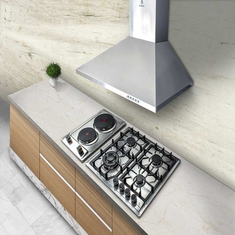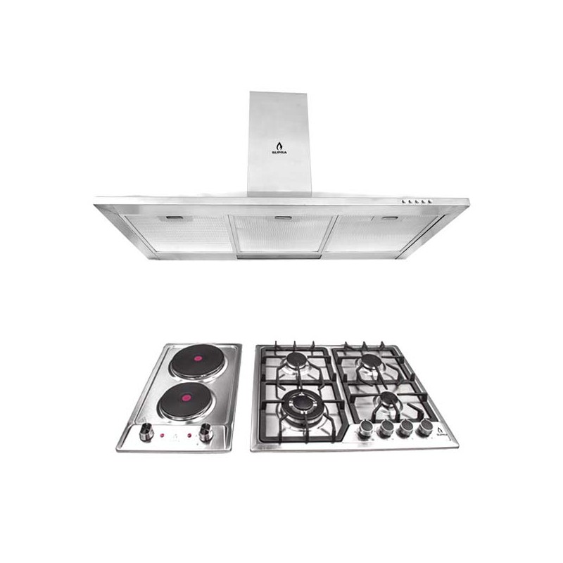 CAMPANA CM-90Campana extractora de pared tipo moño en acero inoxidable de 90 cm.Filtros de acero removibles y lavables atrapa grasa.Motor tipo turbina de 72 W con capacidad de extracción máxima de 310 m³/h.Panel con botones mecánicos.3 velocidades de extracción.1 módulo de luz LED.Medidas: Altura: 19.5cm X Frente: 89.5cm X Fondo: 49.5cm X Peso: 7kg.