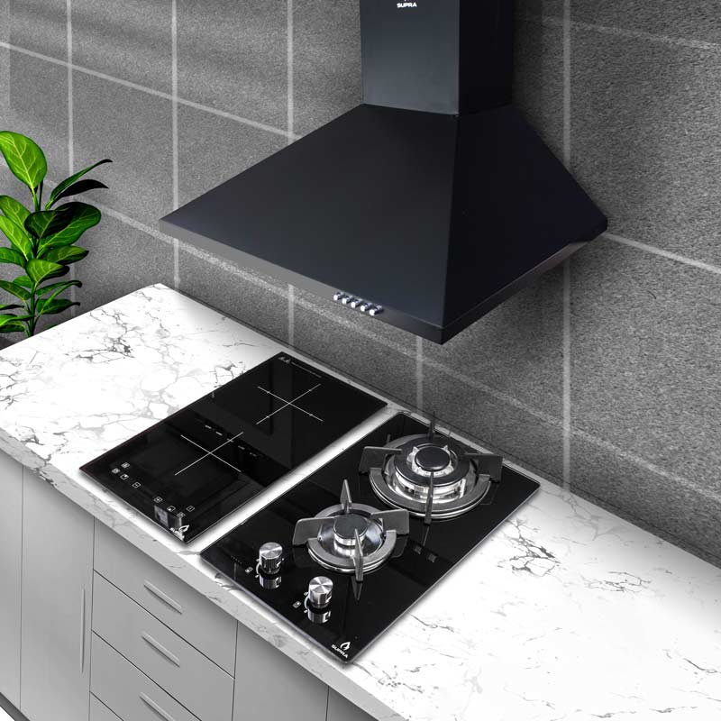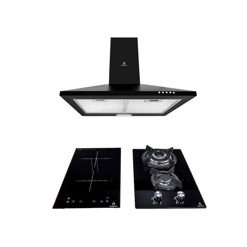 CAMPANA CM-60-BLACKCampana extractora de pared tipo moño en acero pintado color negro de 60 cm.Filtros de acero removibles y lavables atrapa grasa.Motor tipo turbina de 72 W con capacidad de extracción máxima de 310 m³/h.Panel con botones mecánicos.3 velocidades de extracción.1 módulo de luz LED.Medidas: Altura: 19.5cm X Frente: 59.5cm X Fondo: 48.5cm X Peso: 5.6kg.