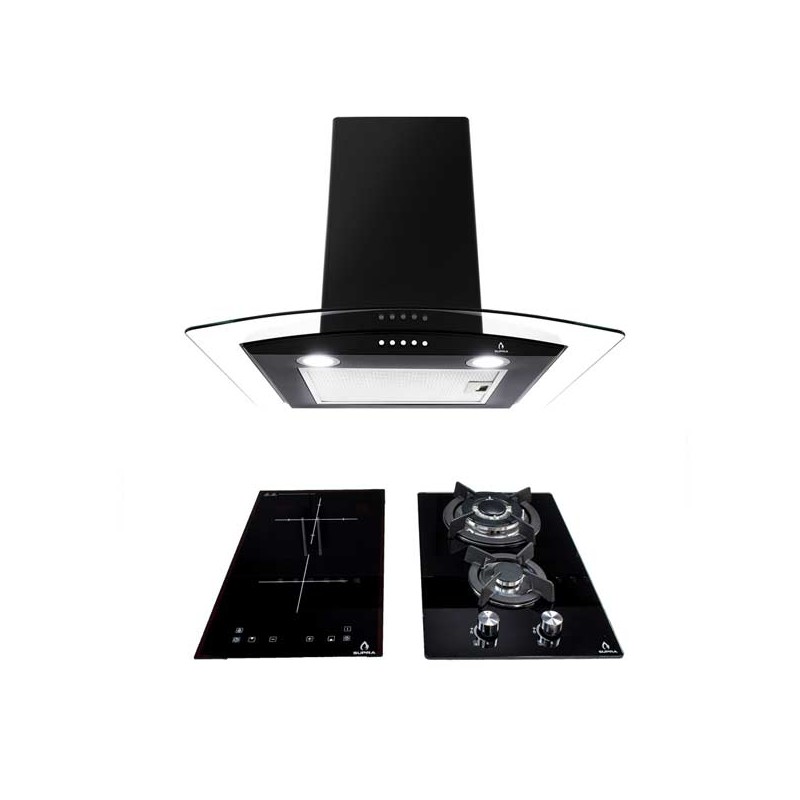 CAMPANA CC-60-BLACKCampana extractora con cristal curvo decorativo de tipo pared de 60 cm.Filtros de acero removibles y lavables atrapa grasa.Motor tipo turbina de 143 W con capacidad de extracción máxima de 460 m³/h.Panel con botones mecánicos.3 velocidades de extracción.2 módulos de luz LED.Medidas: Altura: 31cm X Frente: 59.5cm X Fondo: 47cm X Peso: 11.6kg.